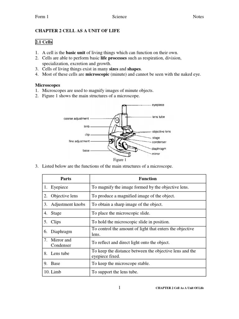 Cell as the basic unit of. Science short note for form 1 students . Science form 1 chapter 2 .